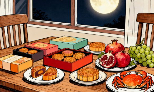 As the Mid-Autumn Festival night approaches, every household will set up an exquisite incense table in their courtyard. On the table, plump pomegranates, crisp and sweet pears, and round grapes are neatly arranged. A few freshly baked mooncakes are placed on top, and an incense stick is lit. The whole family will stand around the incense table.